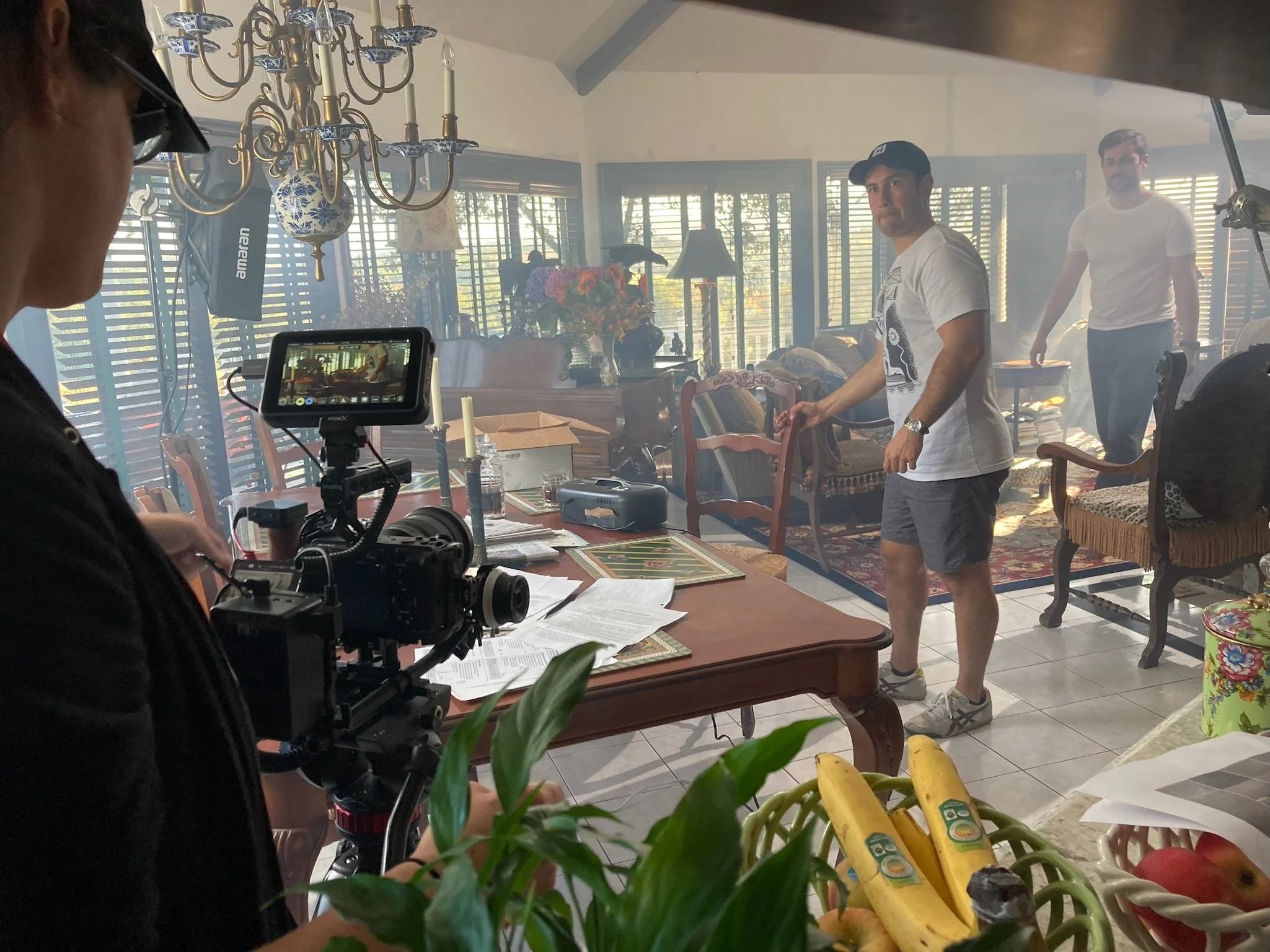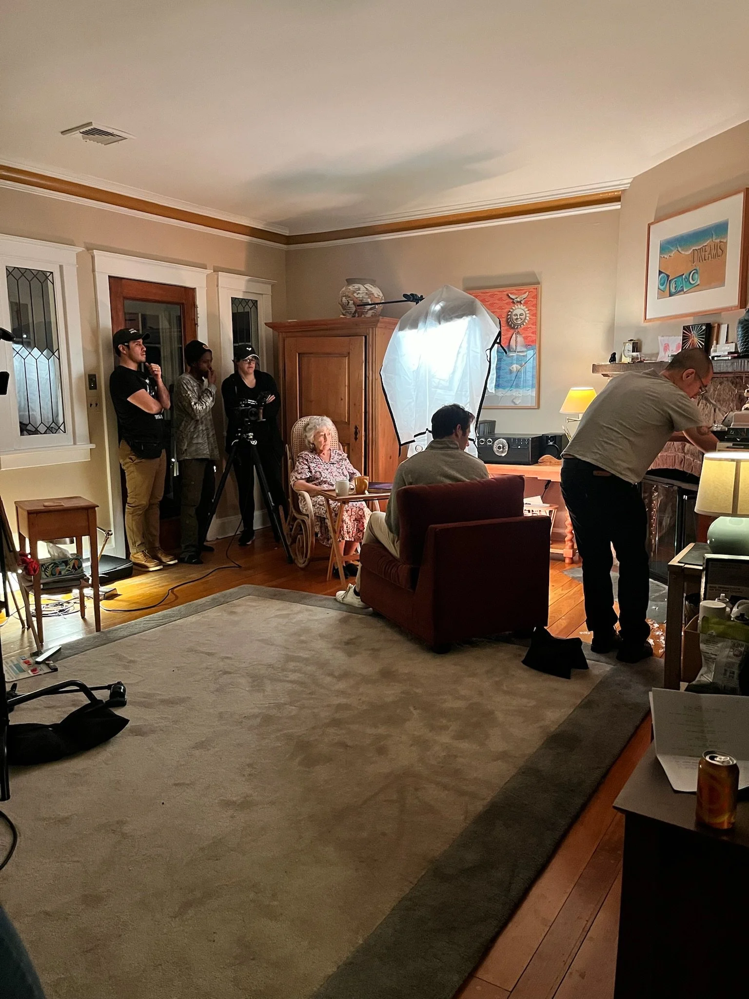 We made Between Two Waves with what we had: a house full of history, a handful of people, and a whole lot of heart. It was filmed in just 13 days in the Pennsylvania countryside where I grew up, inside my cousin’s house, with a crew small enough to fit around a dinner table. My husband Mark and I co-directed it while raising our 5-year-old daughter (who was 3 at the time of production), and like most indie filmmakers, we wore way too many hats to count.